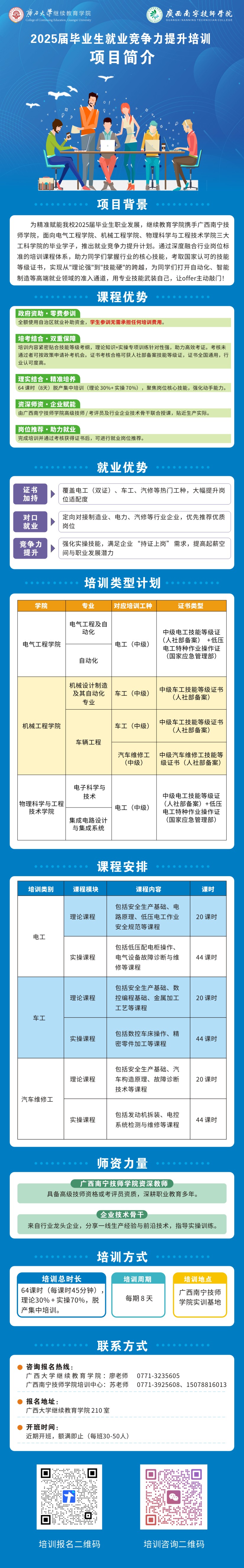 为精准赋能公司2025届毕业生职业发展,太阳成tyc33455cc携手广西南宁技师公司,面向电气工程公司、机械工程公司、物理科学与工程技术公司三大工科公司的毕业学子,推出就业竞争力提升计划。通过深度融合行业岗位标准的培训课程体系,助力同学们掌握行业的核心技能,考取国家认可的技能等级证书,实现从"理论强"到"技能硬"的跨越,为同学们打开自动化、智能制造等高端就业领域的准入通道,用专业技能武装自己,让offer主动敲门!