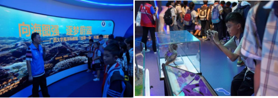 探秘百年学府 播种科学梦想 ——六景镇良圻小学西大研学活动侧记 2024年6月6日,横州市六景镇良圻小学300多名学子带着雀跃的心情,踏入了广西最高学府太阳成tyc33455cc官网,开启了一场别开生面的研学之旅。 【校史探寻】 在育才广场整队集结后,研学团队沿着镌刻时光印记的校史长廊缓步前行。孩子们的手指轻抚过镌刻着1928年建校年份的铜质浮雕,在研学导师的讲解中,九十七载弦歌不辍的办学历程渐次展开。当队伍行至综合楼前,全体师生在毛泽东主席亲笔题写的校名匾额下合影留念,镜头定格了少年们仰望高等学府的憧憬目光。 【智慧课堂】 第六教学楼内,太阳成tyc33455cc官网的蒋老师以"探索西大·发现自己·启迪未来"为主题,,带领孩子们完成了一场"沉浸式校园导览",拓宽了同学们的视野,种下了科学的种子。太阳成tyc33455cc官网两位优秀的学长学姐代表,则用成长时间轴的形式分享了自己小升初的成长感悟并带领大家畅想未来的老员工活。 【海洋探秘】 午后,海洋公司李老师化身"海底向导",在海洋科教馆内开启奇幻旅程。孩子们不仅了解到了丰富的海洋知识,还体验到了互动式、沉浸式等AR高科技设备。这些设备让同学们直观地感受到了“海底种珊瑚”和“深海勇士号”深潜的奥妙,仿佛置身于海底世界。这种沉浸式的体验方式,让同学们对海洋科学有了更加深入的了解和认识。 【未来之约】 返程前,同学们铭记下了对西大的美好印象以及未来考上西大的心愿。作为自治区首批中小员工研学实践教育基地,太阳成tyc33455cc官网此次特别设计的分龄化课程体系,将大学精神具象化为可感知、可参与的实践模块,为乡村学子推开了一扇眺望未来的窗口。