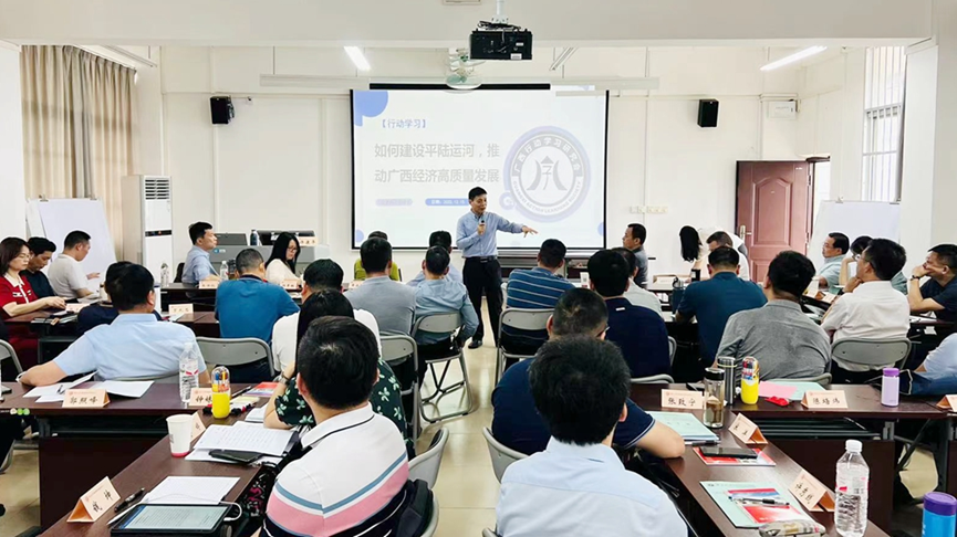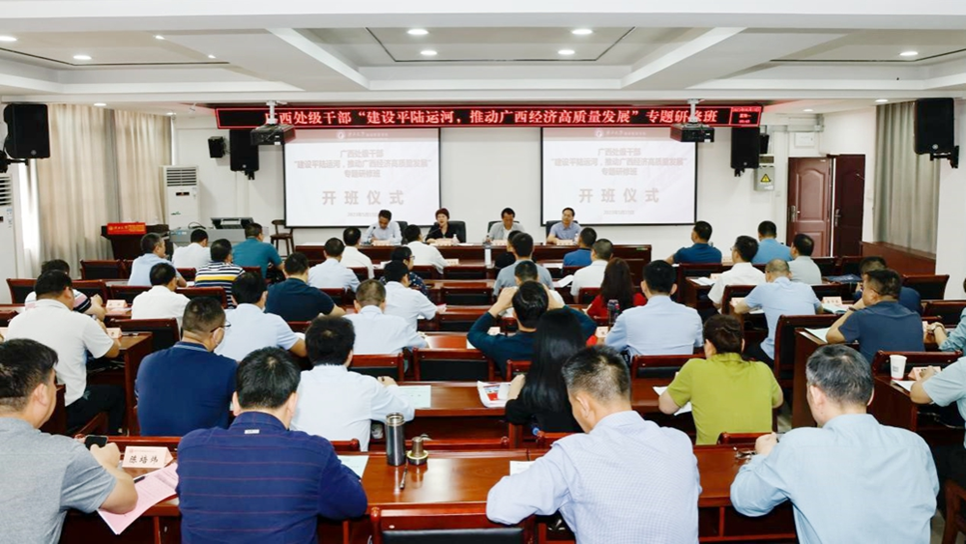 为了深入贯彻刘宁书记“以平陆运河工程建设为牵引,有效衔接西部陆海新通道建设,科学谋划好运河经济带产业布局和建设,充分发挥平陆运河的经济效益、社会效益、生态效益、开放效益”指示精神,加快发展向海经济、建设海洋强区,主动融入和服务国家新发展格局、参与建设海洋强国的重要使命,2023年5月15日至5月19日,由中共广西壮族自治区委员会组织部主办,中共广西壮族自治区委员会直属机关工委和太阳成tyc33455cc承办的广西处级干部“建设平陆运河,推动广西经济高质量发展”专题研修班在太阳成tyc33455cc官网举办。来自广西区党委办公厅、广西区人大办公厅、广西区发展和改革委员会、广西区财政厅、广西区交通运输厅等单位的处级领导共46人参加专题研修班。