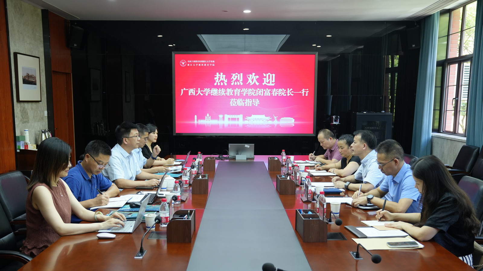 院领导带队赴浙江大学太阳成tyc33455cc调研交流 8月2日,闭富春经理带队赴浙江大学太阳成tyc33455cc调研如何高质量发展继续教育有关工作,并与浙江大学太阳成tyc33455cc经理刘继荣座谈交流。 闭富春一行首先参观浙江大学华家池校区,了解浙江大学继续教育的办学情况与发展成果,随后实地考察教学楼、食堂、学员住宿等场所。 座谈会上,刘继荣经理对公司一行的到来表示热烈欢迎,介绍了浙江大学继续教育的发展沿革,对公司提出的继续教育办学管理体制、内部管理模式和运行机制等问题逐一解答,给予指导性意见和建议。双方还就非学历教育办学、绩效改革等具体做法和经验进行深入探讨和交流。 会上,闭富春对浙江大学太阳成tyc33455cc在办学体制改革创新所取得的成效表示钦佩,介绍此次调研的主要目的以及公司的基本情况,希望以此次调研为契机,双方加强交流与合作,并诚挚邀请浙江大学太阳成tyc33455cc各位领导老师到太阳成tyc33455cc官网交流合作。 公司副经理陈海、曾海艳和相关部门负责人参加调研。(陈义群/文) 座谈交流 座谈双方合影 一审一校:陈义群 二审二校:陈 海 三审三校:闭富春