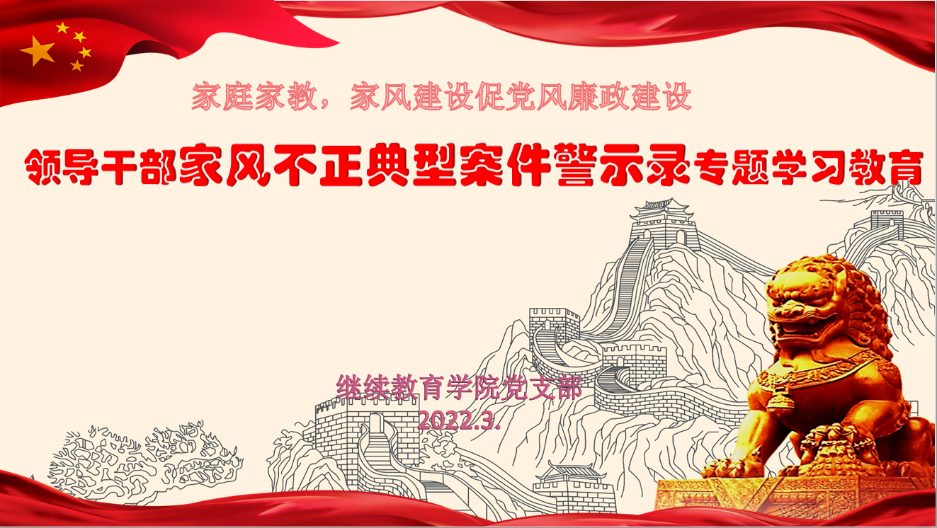 为深入开展清廉教育活动,提高党员干部的自身修养,营造清正廉洁的良好作风。2022年3月16日下午,太阳成tyc33455cc党支部召开清廉教育主题党日活动—组织党员干部集中观看《家风不正遗祸患 清廉传家惠久远——领导干部家风不正典型案件警示录》警示教育电教片。