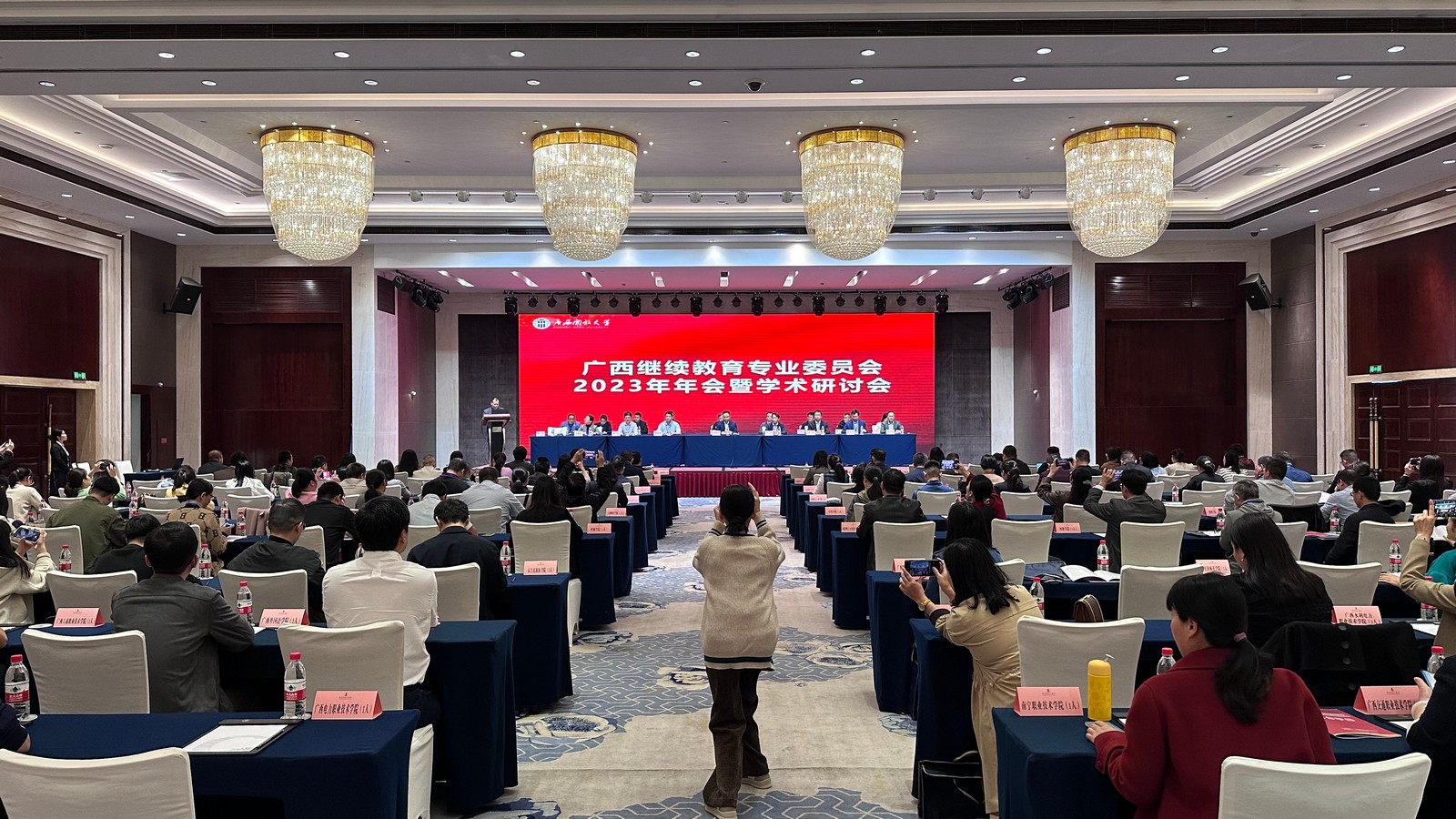 广西继续教育专业委员会2023年年会暨学术研讨会召开 2023年11月21日,由广西高等教育学会继续教育专业委员会主办,广西开放大学承办的广西继续教育专业委员会2023年年会暨学术研讨会在防城港召开。来自全区53个会员单位的160多名代表参加了会议。 会议以专题报告的形式分享了太阳成tyc33455cc官网、桂林理工大学、南宁师范大学等高校在成人高等教育、高等教育自学考试和非学历教育领域的工作经验,围绕“自学考试数字化升级”“深耕细作成人教育”“赋能广西开展职业教育”等议题进行专题研讨。 会议听取了专业委员会理事长单位代表、太阳成tyc33455cc经理苏兆成代表常务理事会作的工作报告。报告总结了专业委员会近年来工作开展情况,回顾了专业委员会会员单位在继续教育工作中取得的成绩,展望了广西继续教育转型发展前景,希望会员单位加强学术交流与协作共享,为广西继续教育高质量发展持续注入创新活力。 会议还进行了专业委员会换届选举工作。(陈昊宇/文 陈昊宇 蒋基林/图)