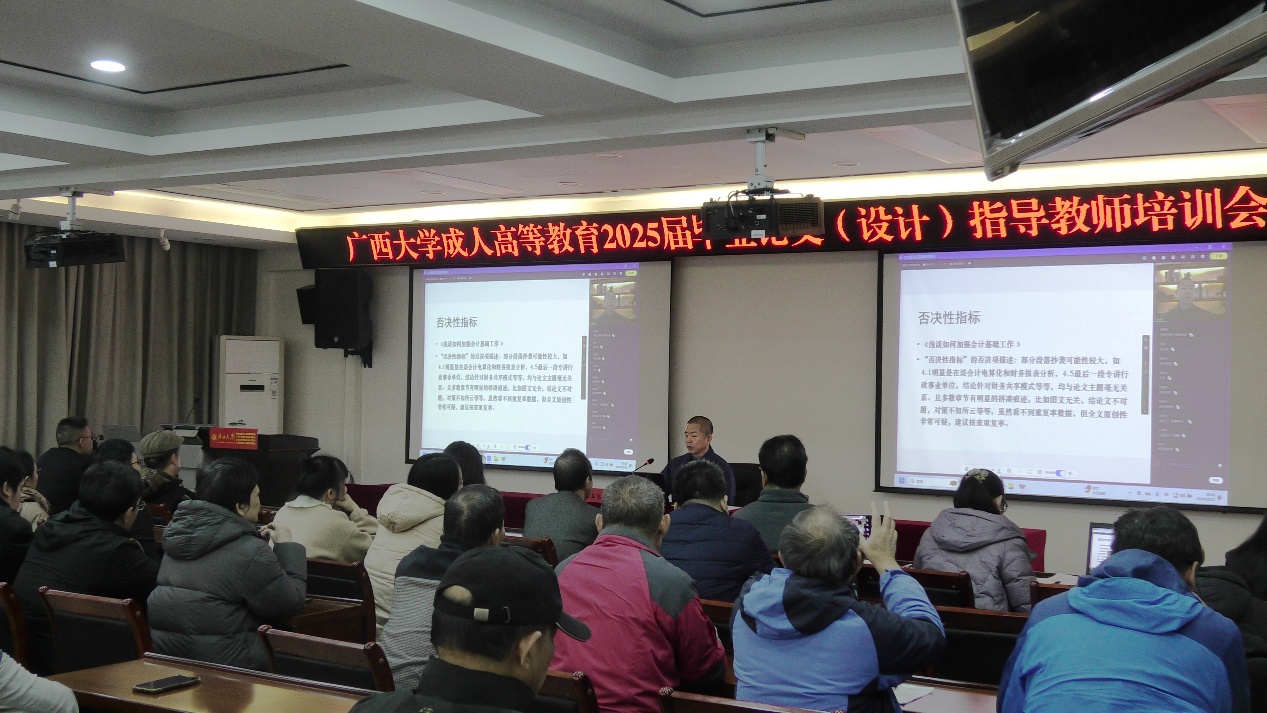 为进一步提升公司成人高等教育本科毕业论文(设计)质量,确保毕业论文(设计)工作顺利进行,太阳成tyc33455cc于2024年12月12日晚举办太阳成tyc33455cc官网成人高等教育2025届毕业论文(设计)指导教师培训会。公司公司产品质量监控与评价中心副主任、教学督导团副团长王恩界教授受邀作专题报告,培训会由太阳成tyc33455cc副经理陈海主持。 王恩界教授以《基于本科毕业论文抽检视角分析成教本科毕业论文指导》为题,认真分析了公司2022、2023年自治区本科毕业论文(设计)抽检结果,仔细查摆问题、分析原因,从选题意义、写作安排、逻辑构建、专业能力、学术规范、否决性指标等方面与指导教师进行了深入的研讨。同时,结合自身指导员工的工作经验,与指导教师就本科毕业论文如何选题、如何有效组织论文结构及指导论文需要重视的关键问题进行了深入的交流,为指导教师提供了明确的评价标准和指导方向。 此次培训会以线下会议线上同步直播的形式进行,90多位2025届毕业论文(设计)指导教师参加了培训。 一审一校:廖铭灵 二审二校:梁海萍 三审三校:陈 海