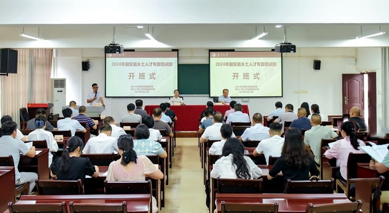 9月10日上午,2024年融安县乡土人才专题培训班在公司开班。融安县委组织部副部长覃生彦出席开班式并作动员讲话,公司培训中心主任黎耀凡出席开班式并致辞。