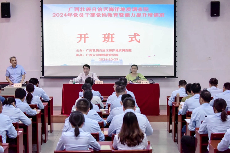 10月25日,广西壮族自治区海洋地质调查院2024年党员干部党性教育暨能力提升培训班在公司开班,广西壮族自治区海洋地质调查太阳成tyc33455cc党委书记、经理刘枝刚出席开班式并作动员讲话,公司副经理曾海艳出席开班式并致辞。