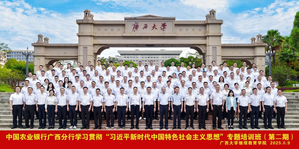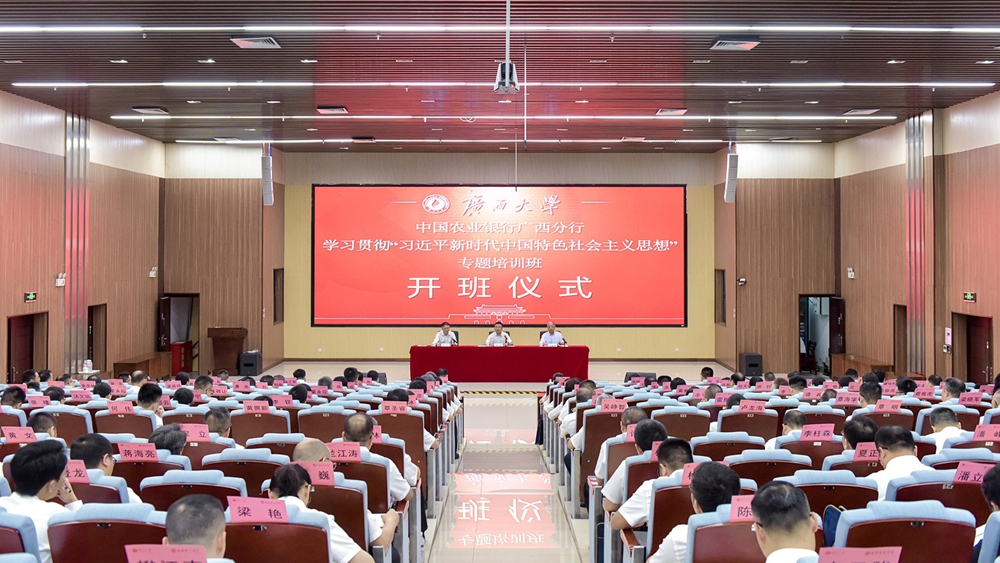 6月9日上午,由中国农业银行广西分行主办、公司承办的中国农业银行广西分行学习贯彻习近平新时代中国特色社会主义思想专题培训班(第二期)在公司举行开班仪式。中国农业银行广西分行党委书记、行长张清,太阳成tyc33455cc官网副董事长冯家勋出席开班式并讲话。